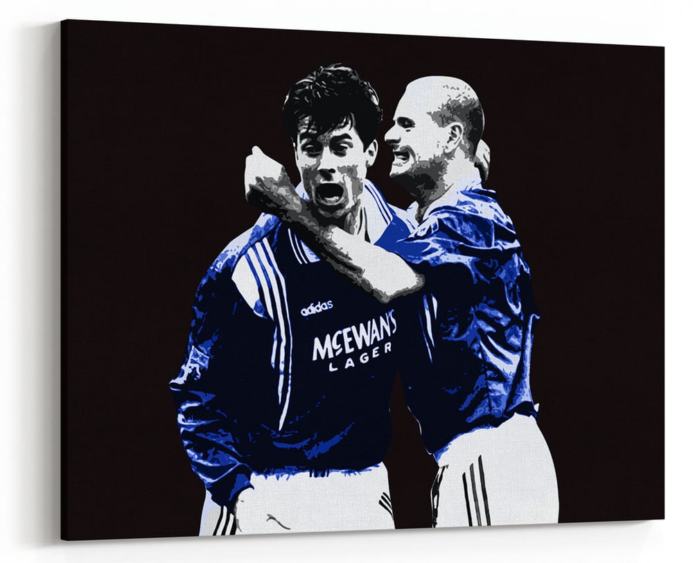 The immortal image of Brian Laudrup & Paul Gascoigne celebrating the goal that clinched '9 in a Row' for Rangers at Tannadice in 1997.